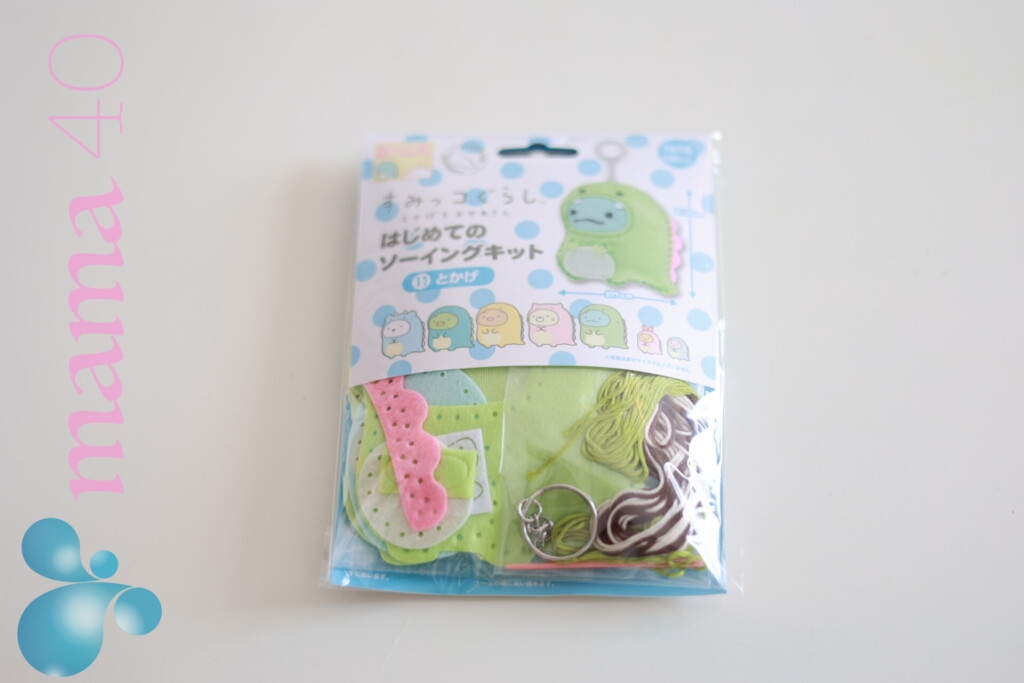 わが家では、幼児用の針も込みでキットになっていた、すみっコぐらし、の縫い物に挑戦しました。
