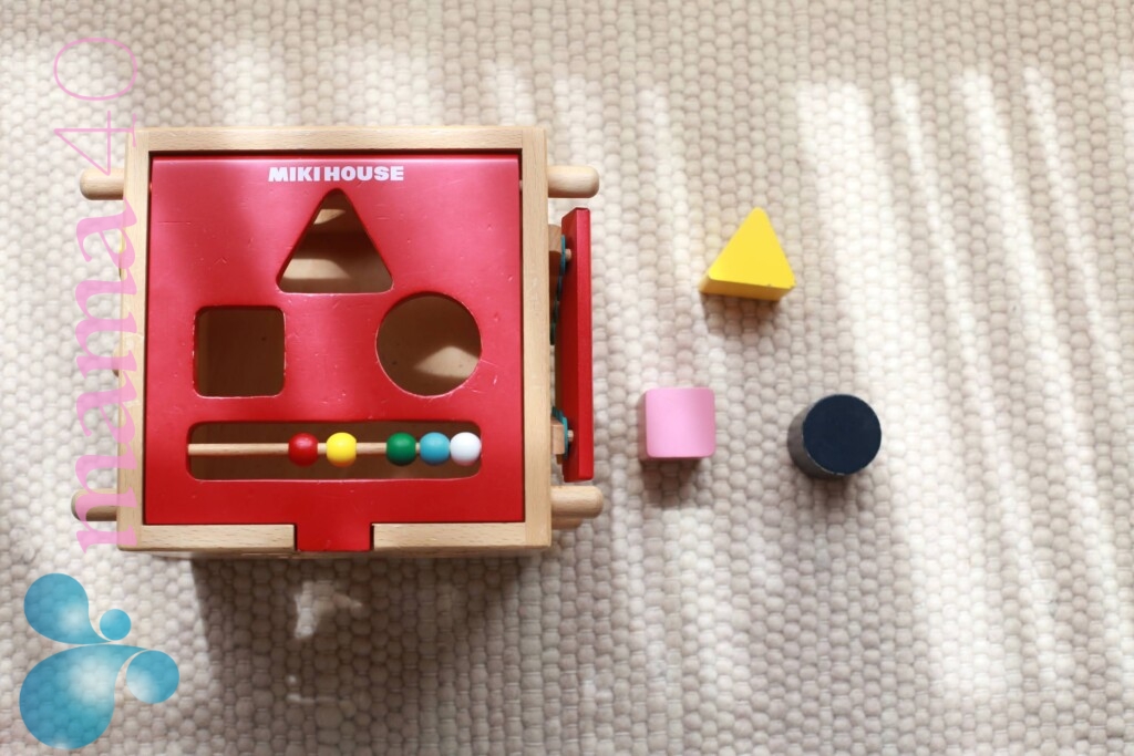 このような型はめパズルは、形の認識、手指の運動、押す楽しさ、入れる楽しさ、たくさんの知育ができます。