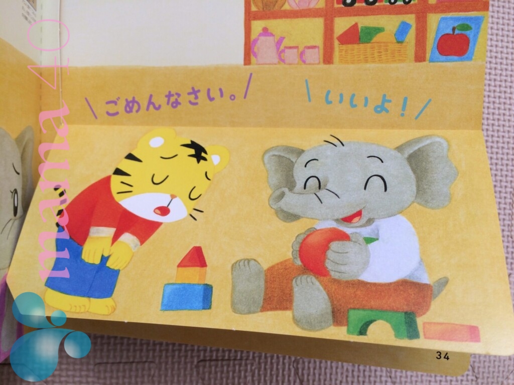 「かして どうぞ」「ごめんなさい」「じゅんばん」「はんぶんこ」「ありがとう」