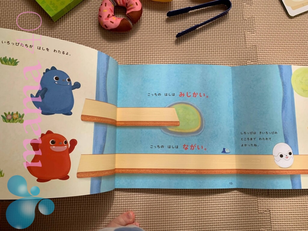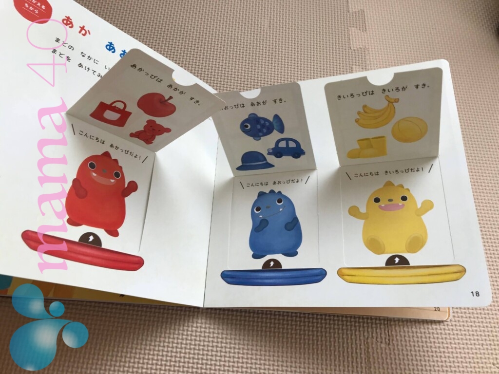 まず赤、青、黄色に続いて、緑、白、黒を学びます。身の回りのものは何色かな?も気がつくようになってきます。さらに、長い、短い、大きい、小さい、などについても学んでいきます。