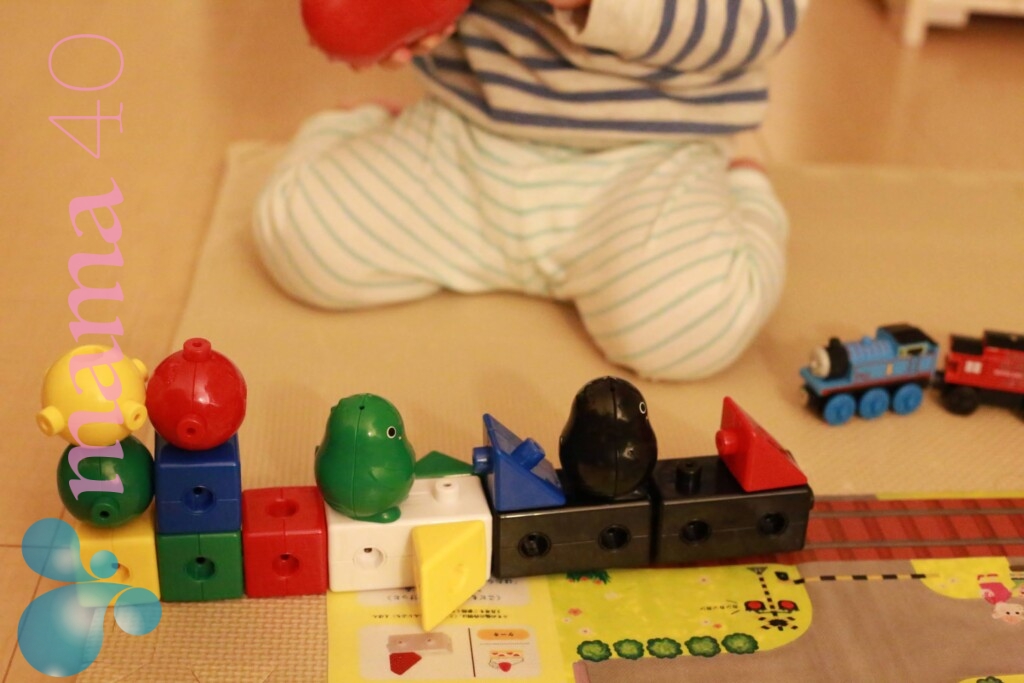 今の【知育ブロック】はきらきらしているのですね!!(わが家の知育ブロックはきらきらなしです)