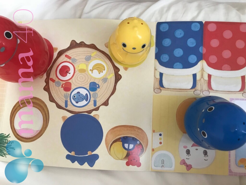 こんなに可愛いアイテムで、色、大小などの概念を、遊びながら学べてしまう…。本当にすごい知育玩具です。